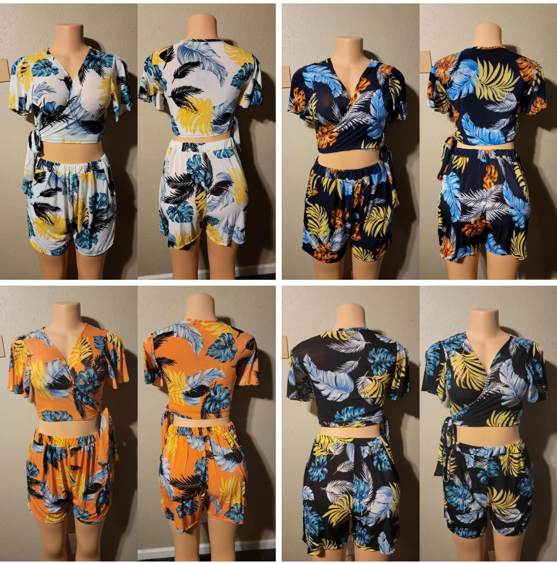 Two piece top and shorts set with an adjustable wrapping top.
