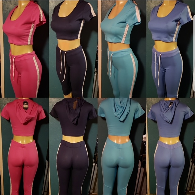 Two piece top and shorts hoodie outfit with a white stripe design.