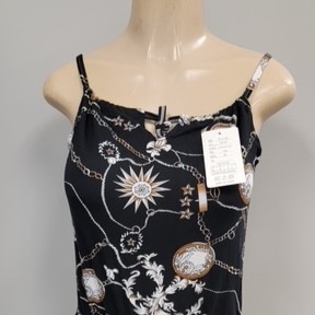 Black romper with a beautiful star print design.